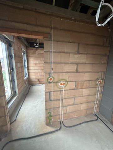 Wykoanano instalacje elektryczną w domu jednorodzinym wraz z pełną instalacja pod inteligentny dom Ampio, instalacja jest wtedy rozkłądana w technologii gwiazdy wraz s okablowaniem sterowniczym w magistralii. Zostały wuykorzystane produkty takich marek jak Rozdzielnia ETI, wyposarzenie rozdzieli ABB, przewody Bitner NKT oraz elektrokabel