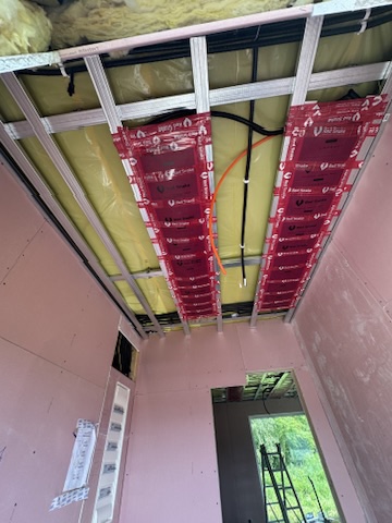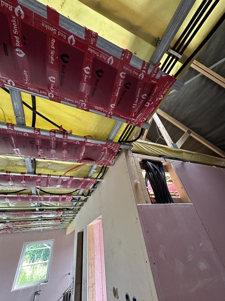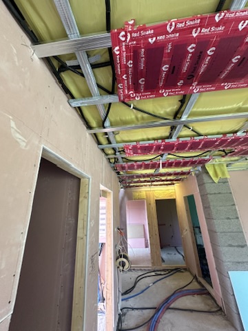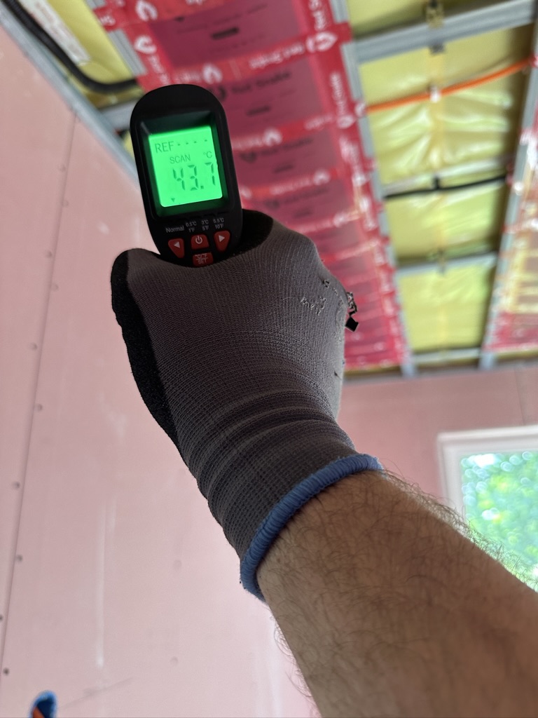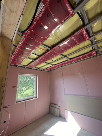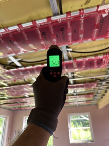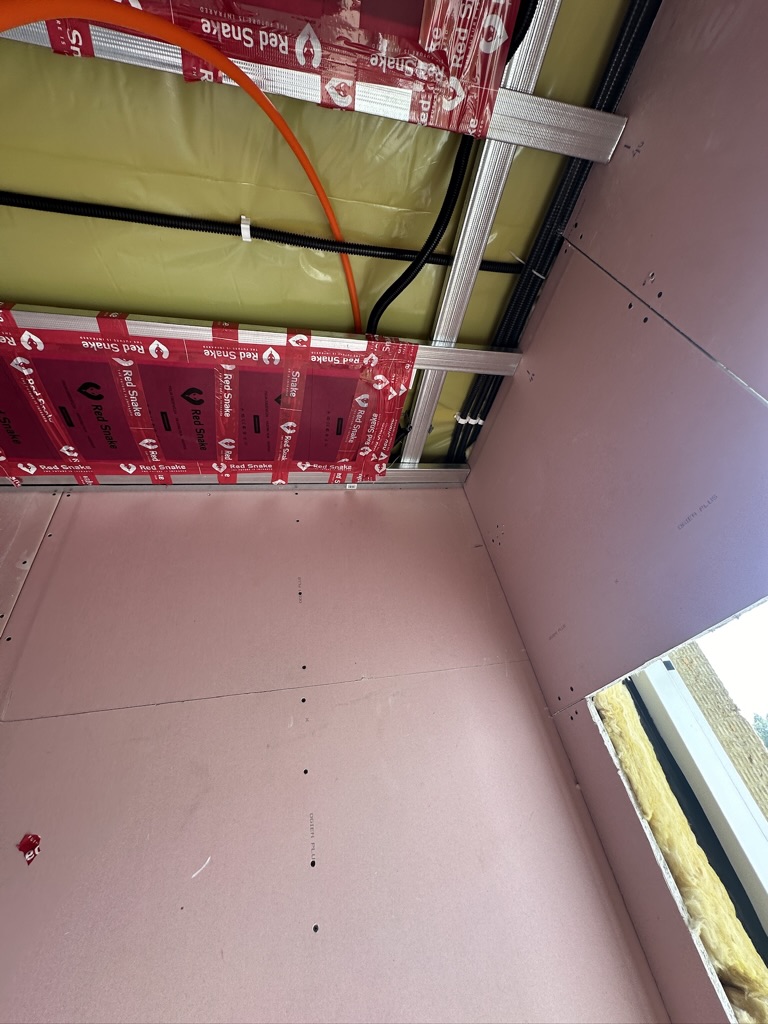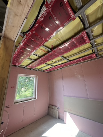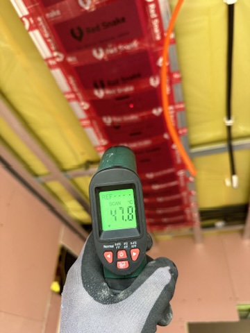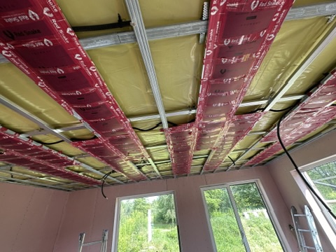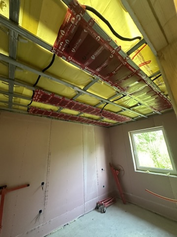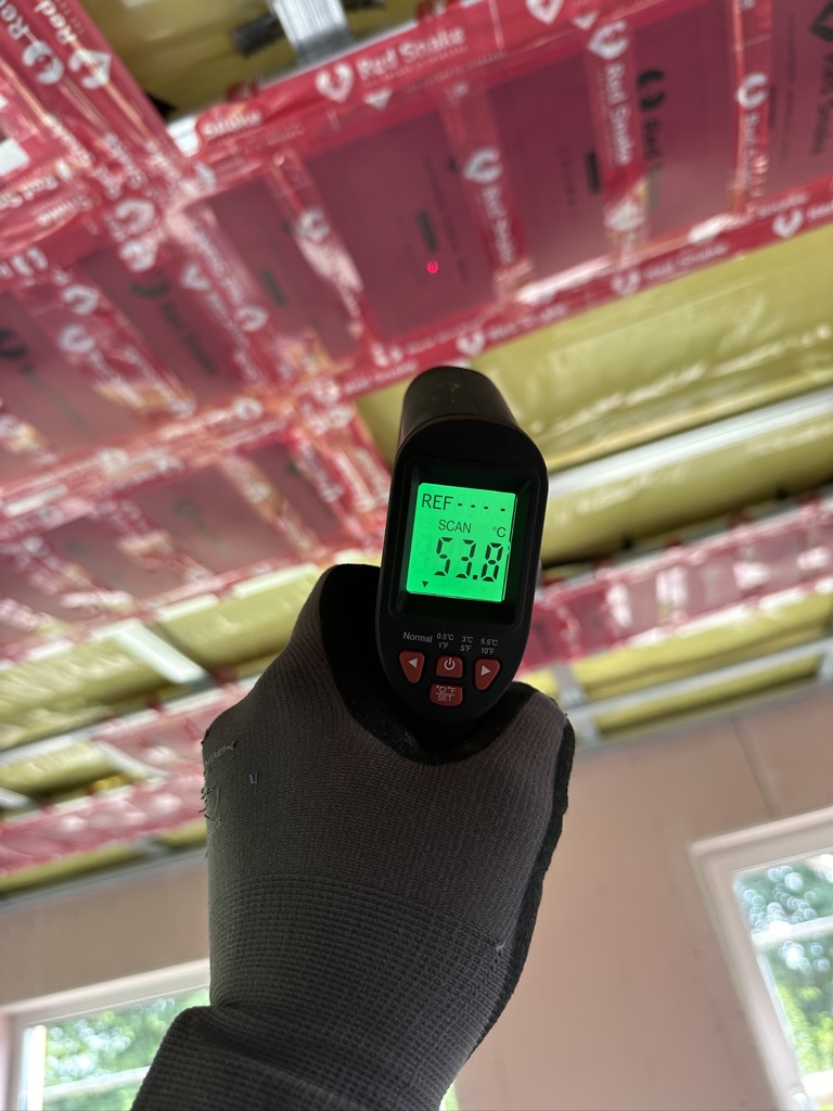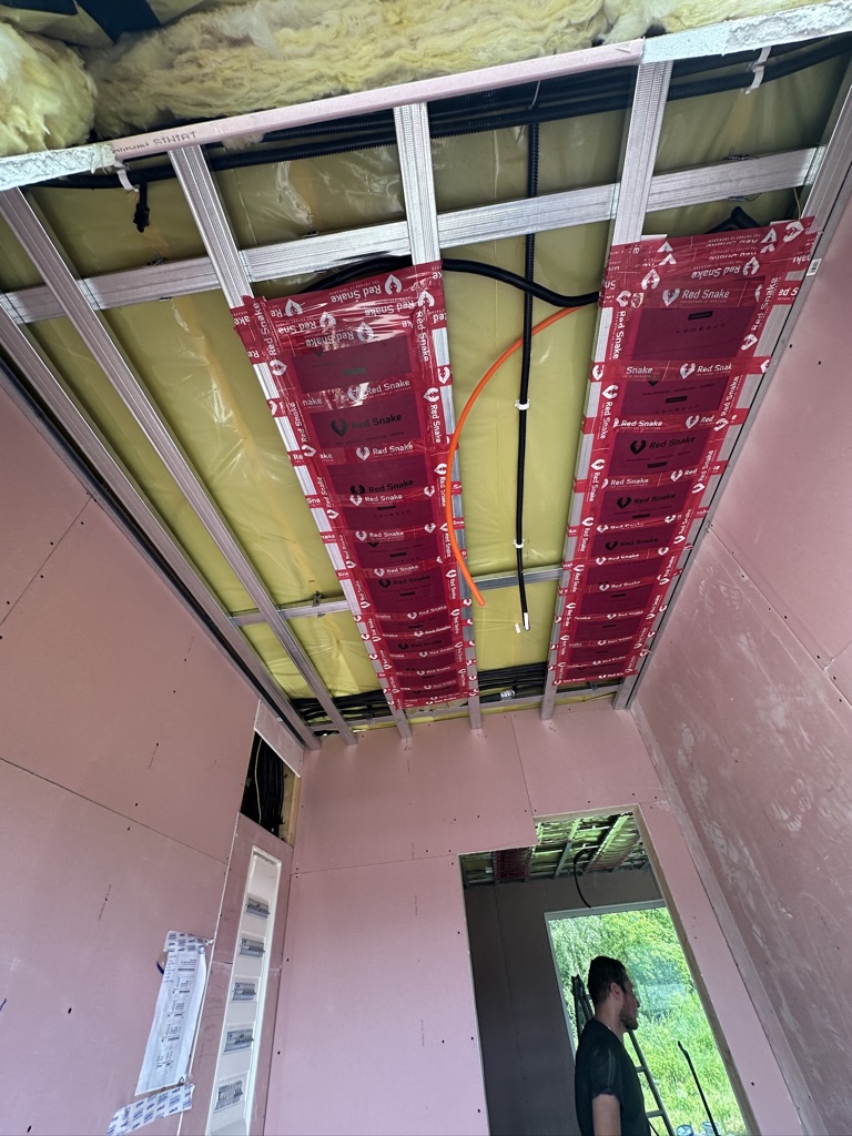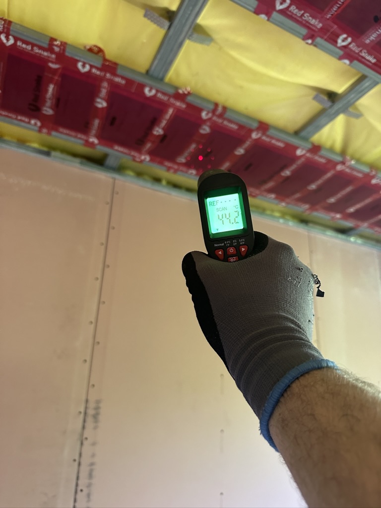 Został wykonany system grzewczy oparty na foliach grzewczych montowanych w suficie oraz sterowaniu termostatami z możliwością zadalnego zarządzania. Zastosowane folie grzewcze Red Snake 150Wm2 oraz termostat NVT 10 Novli