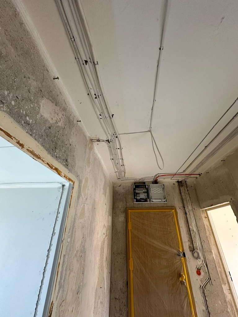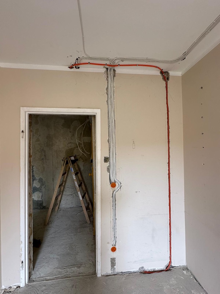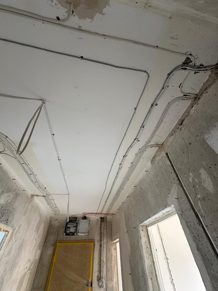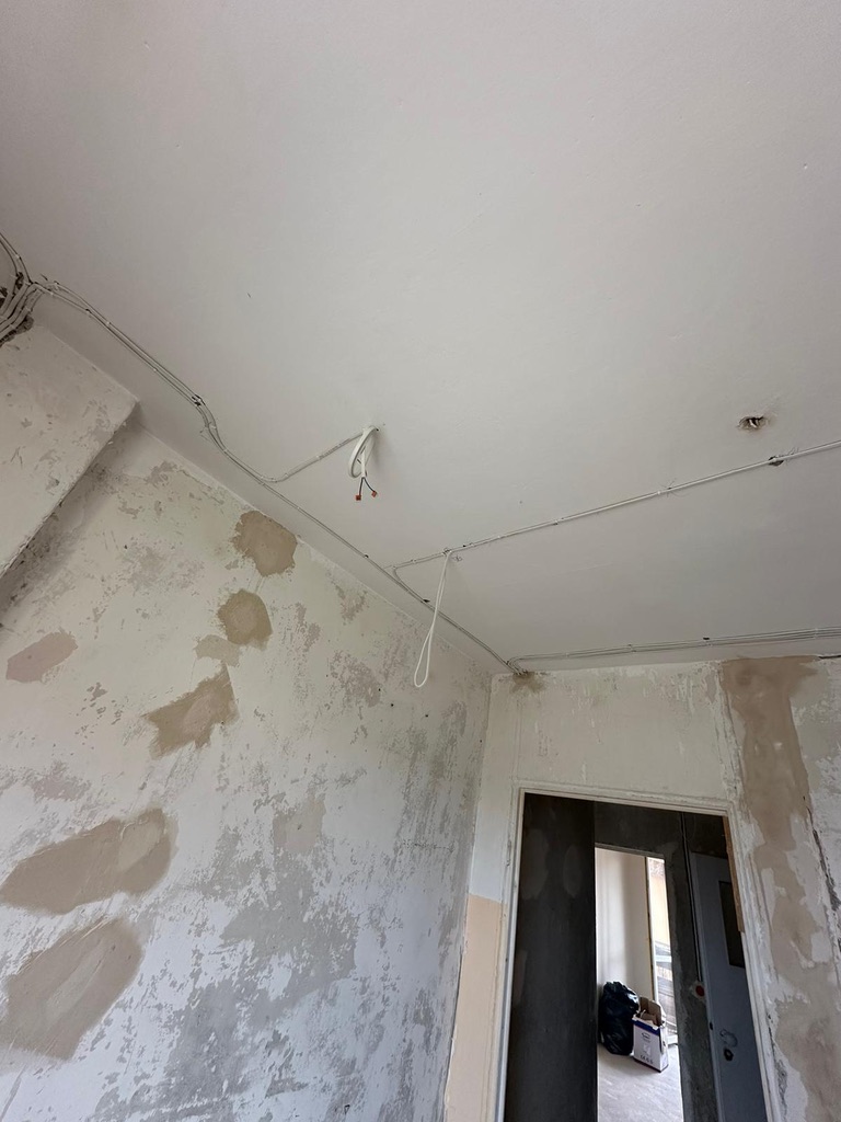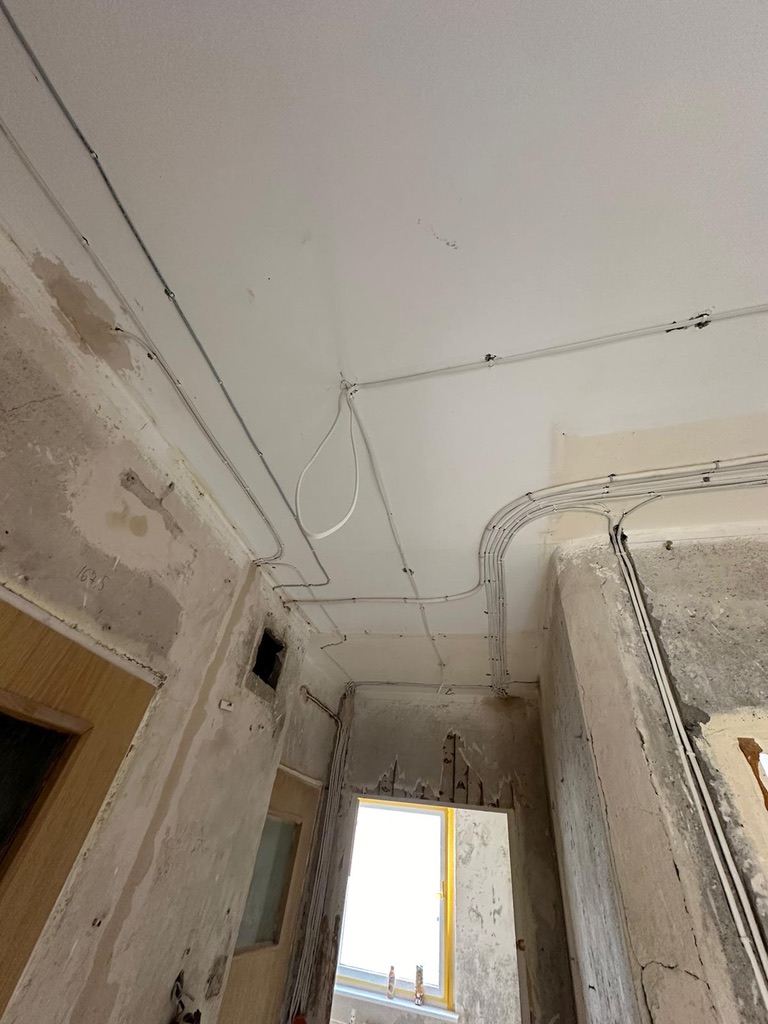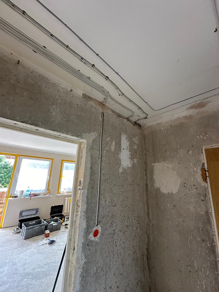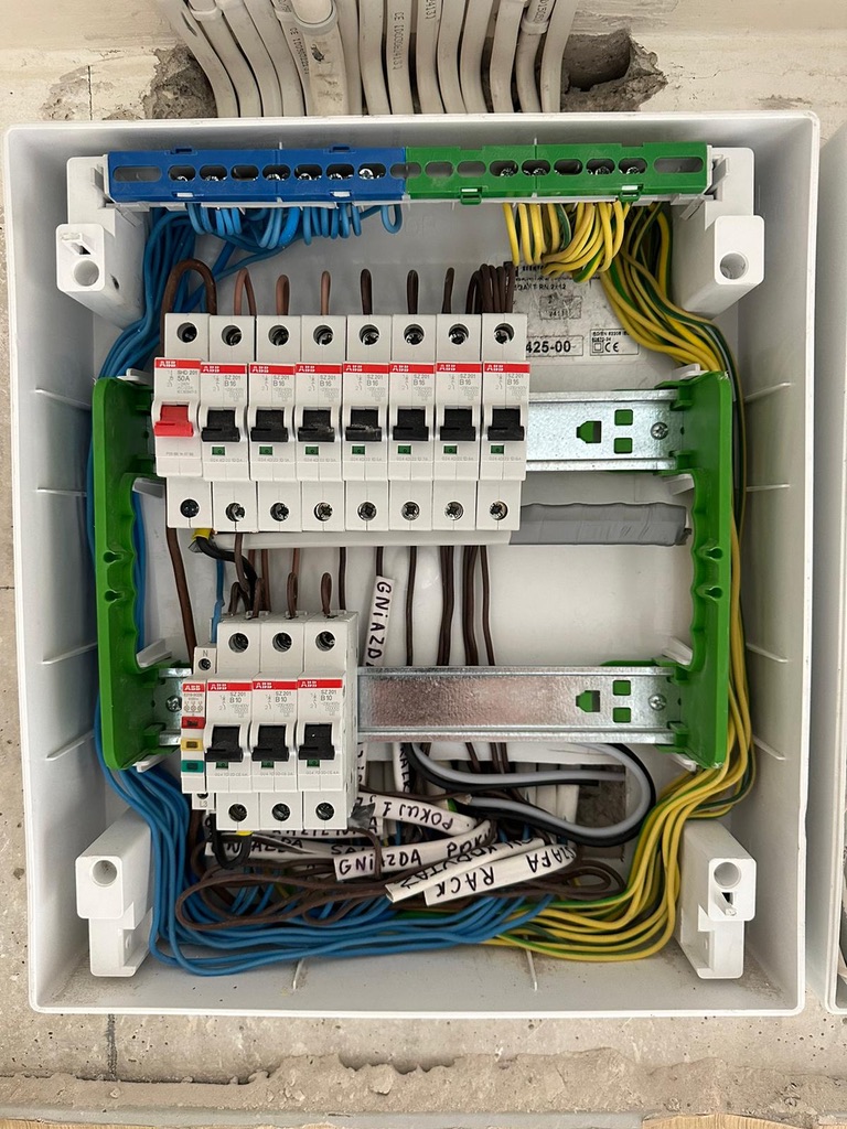 Wymiana pełnej instalacji elektrycznej wraz z przyłaczem elektrycznym w lokalu znajdującym się w bloku z wielkiej płyty. wyposażenie rozdzieli ABB, przewody Bitner NKT oraz elektrokabe.