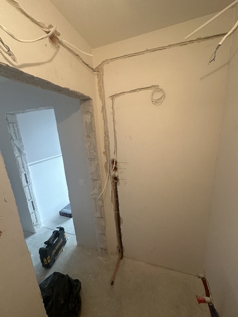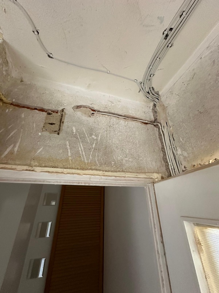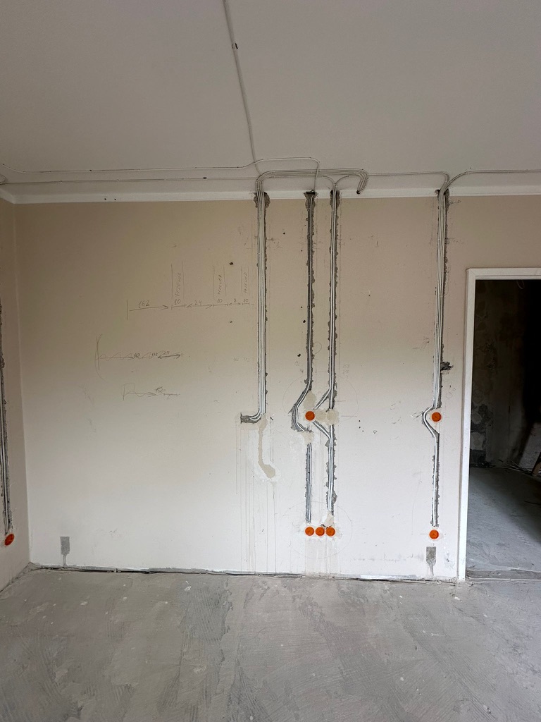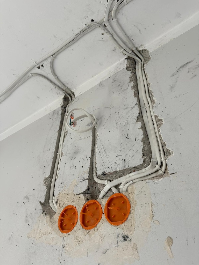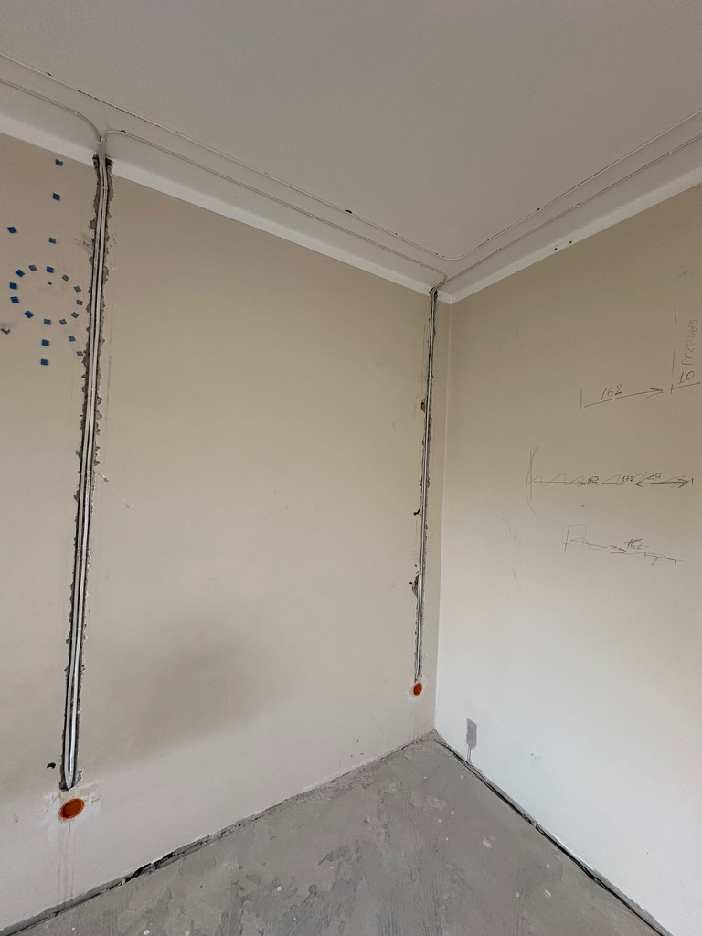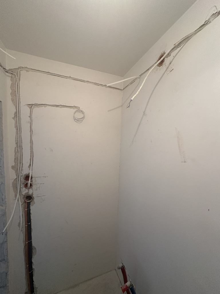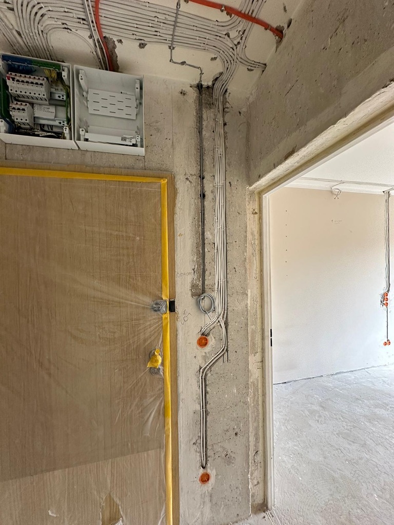 Wymiana pełnej instalacji elektrycznej wraz z przyłaczem elektrycznym w lokalu znajdującym się w bloku z wielkiej płyty. wyposażenie rozdzieli ABB, przewody Bitner NKT oraz elektrokabe.