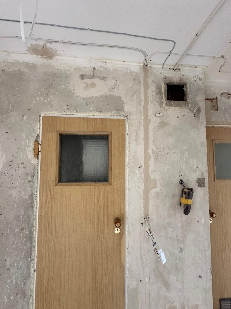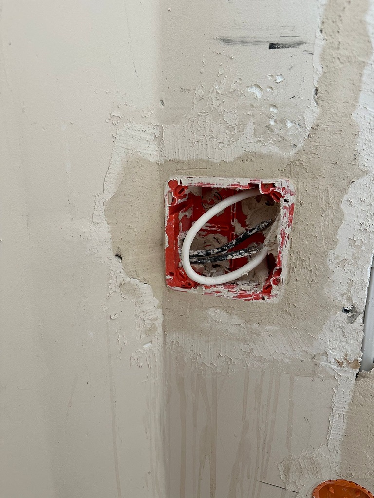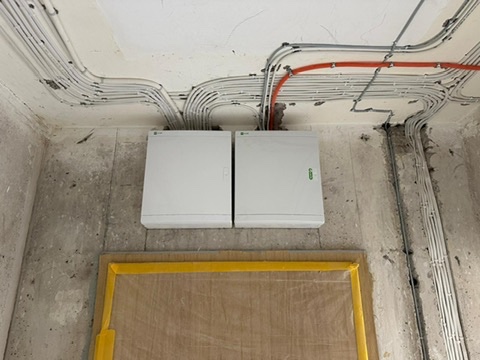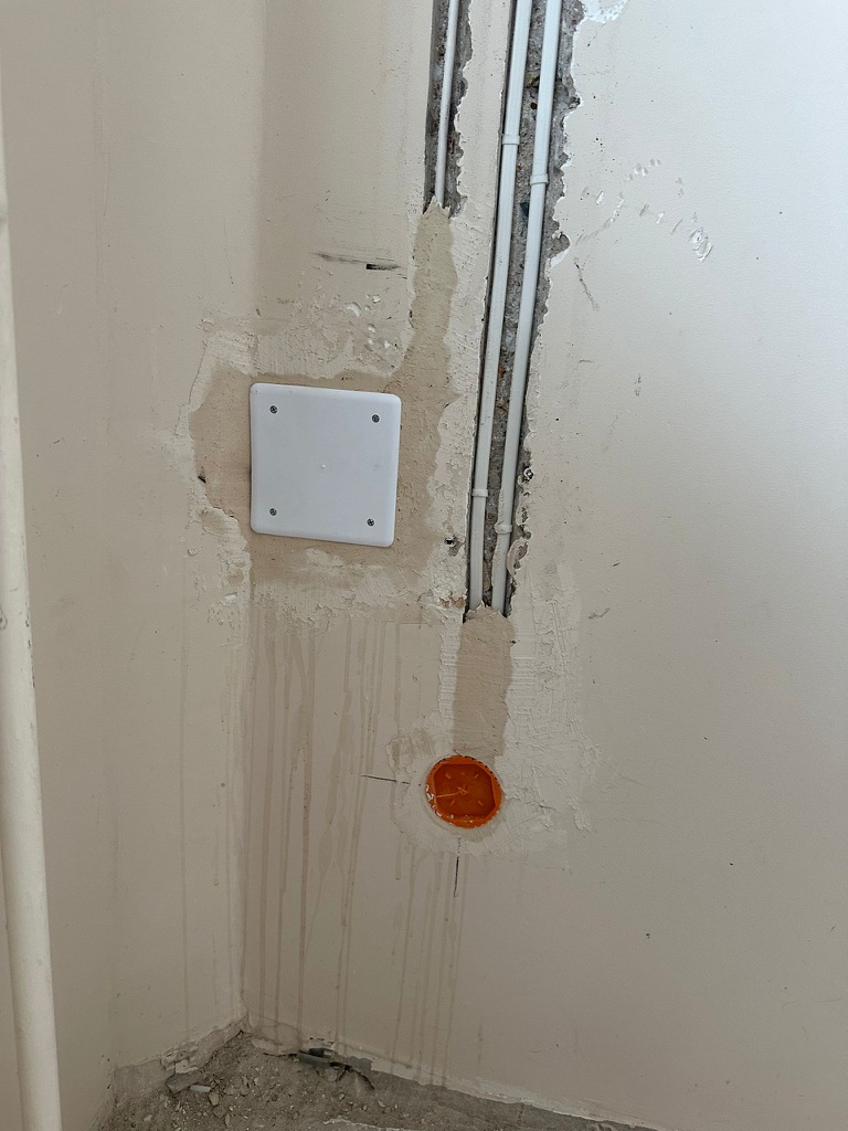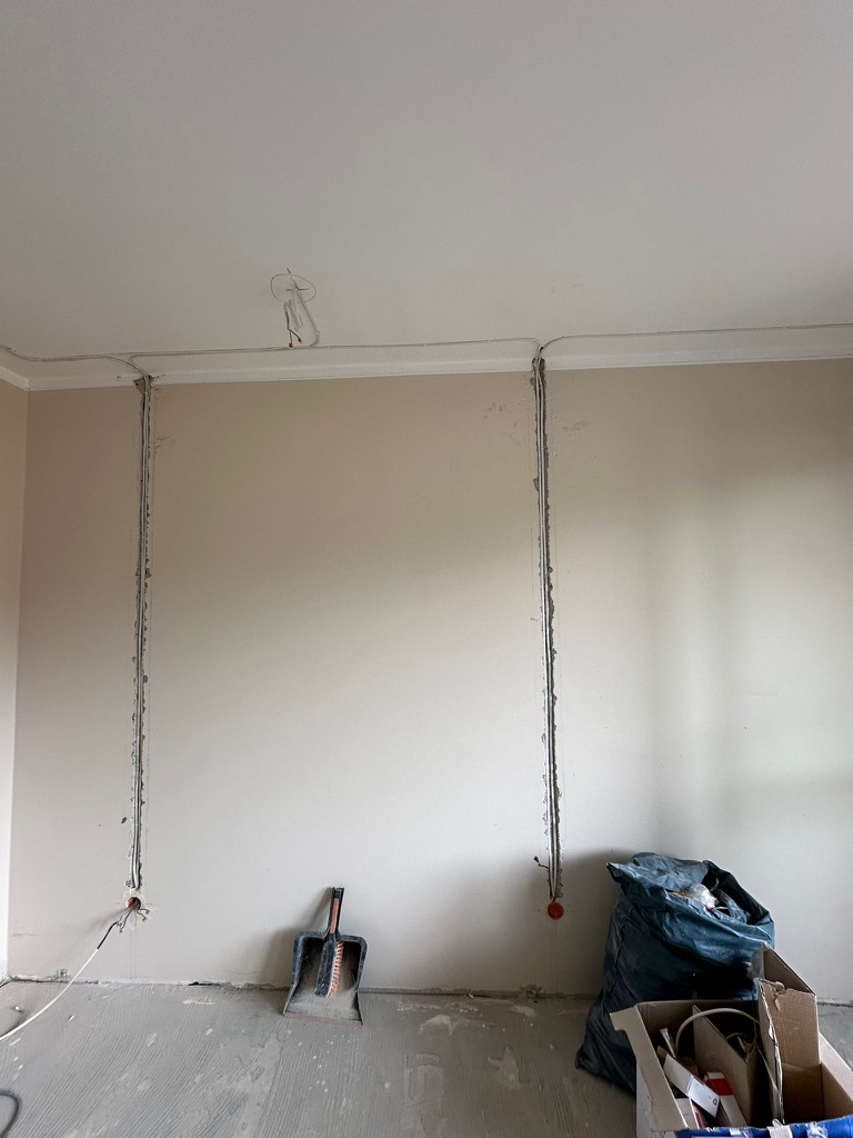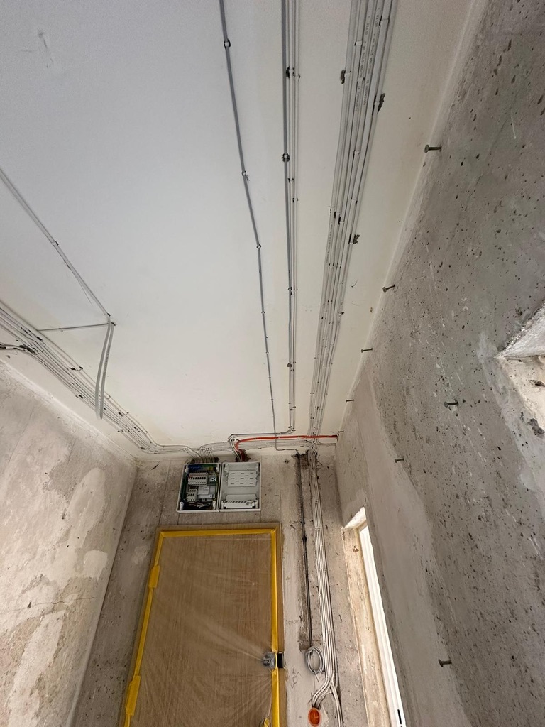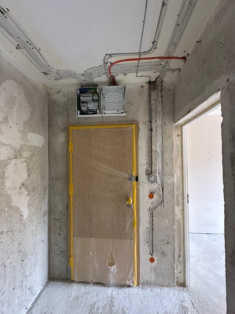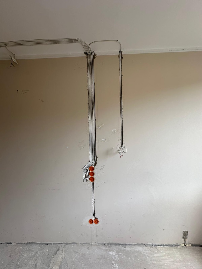 Wymiana pełnej instalacji elektrycznej wraz z przyłaczem elektrycznym w lokalu znajdującym się w bloku z wielkiej płyty. wyposażenie rozdzieli ABB, przewody Bitner NKT oraz elektrokabe.