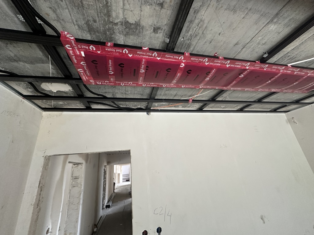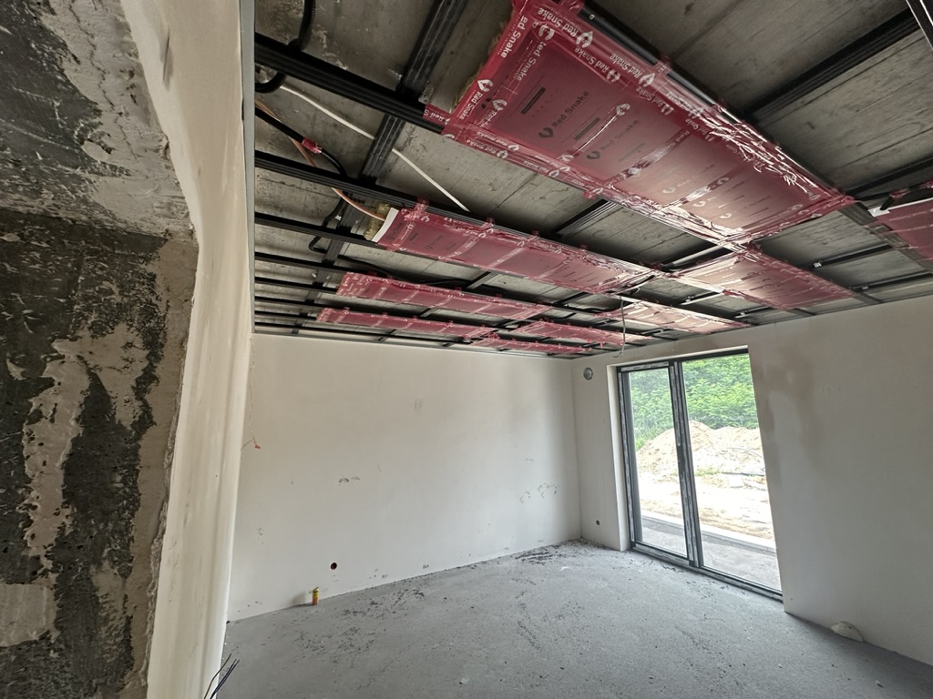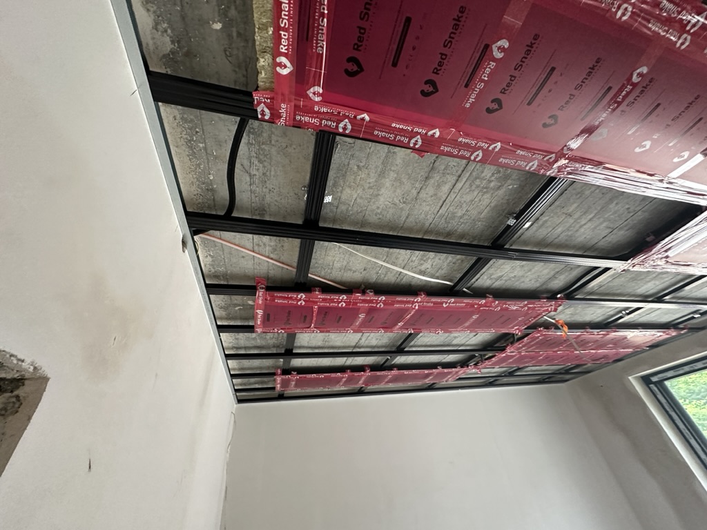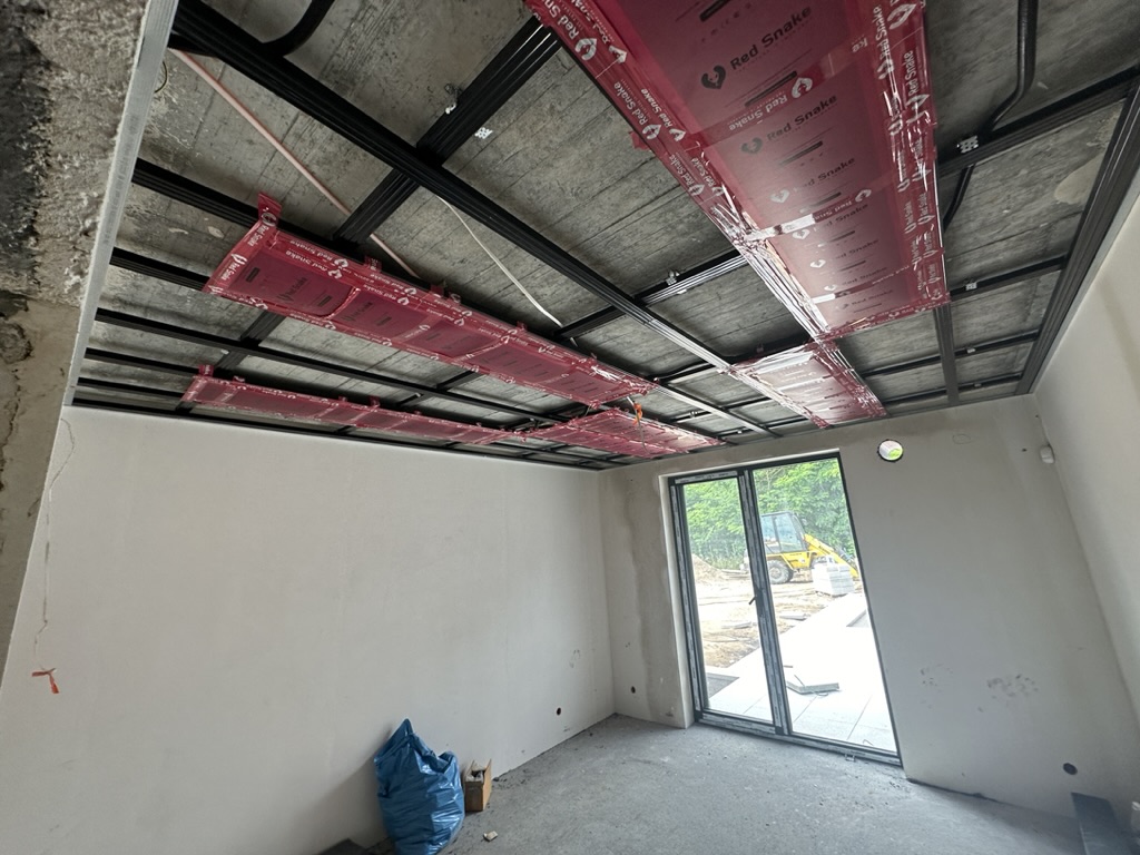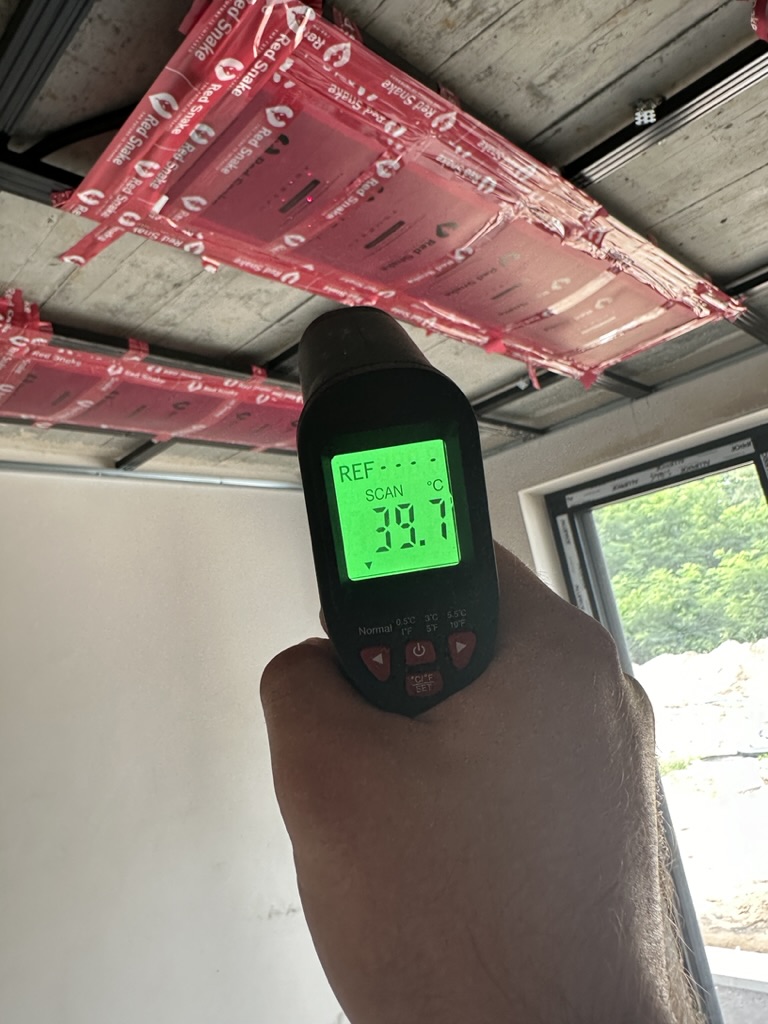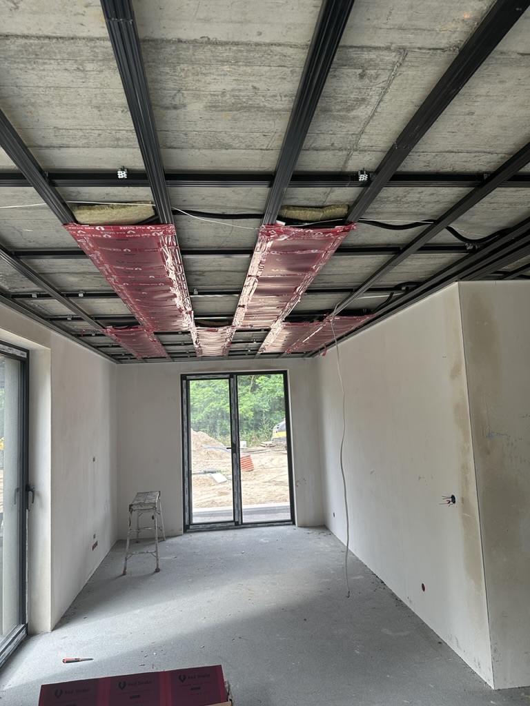 Ogrzewanie sufitowe w Świebodzinie dom ok 300m2 w systemie hybrydowym. Zastosowane folie grzewcze Red Snake 150Wm2 podłoga, 400Wm2 sufit.