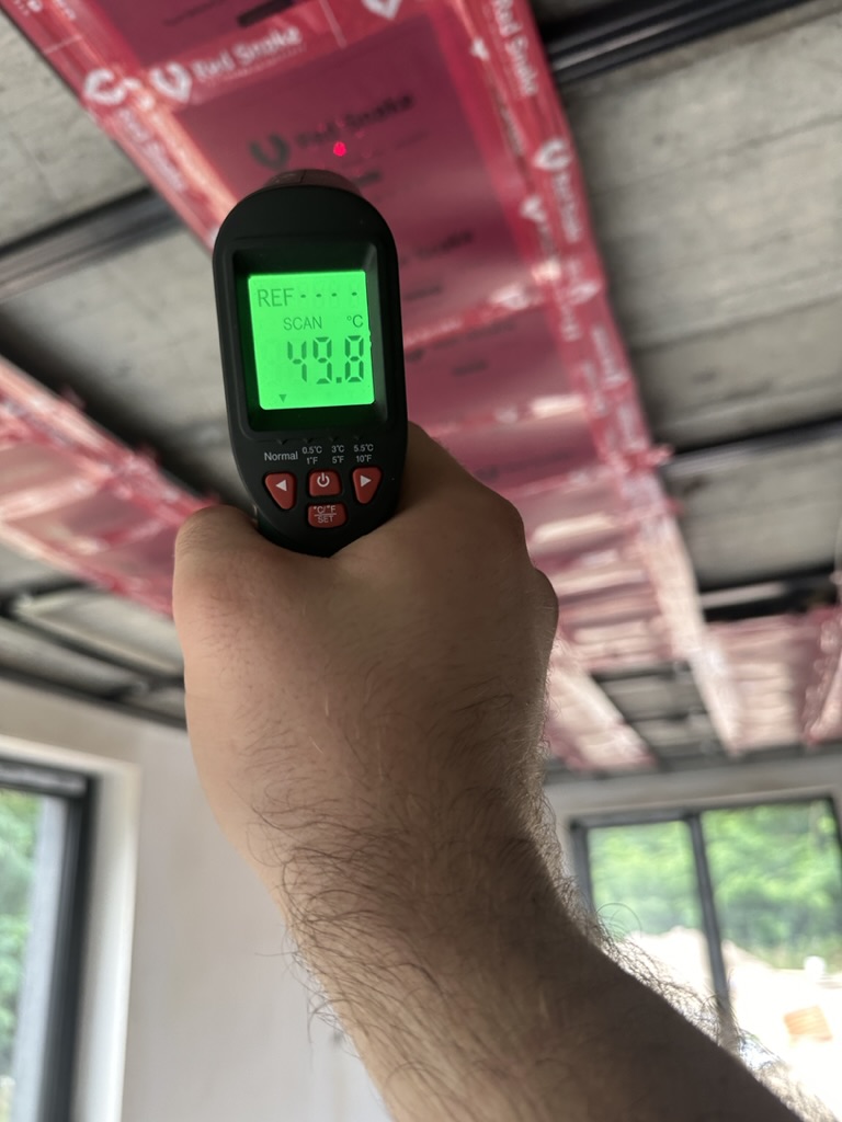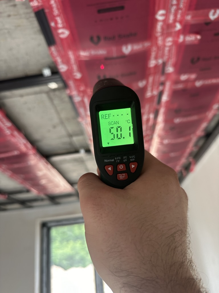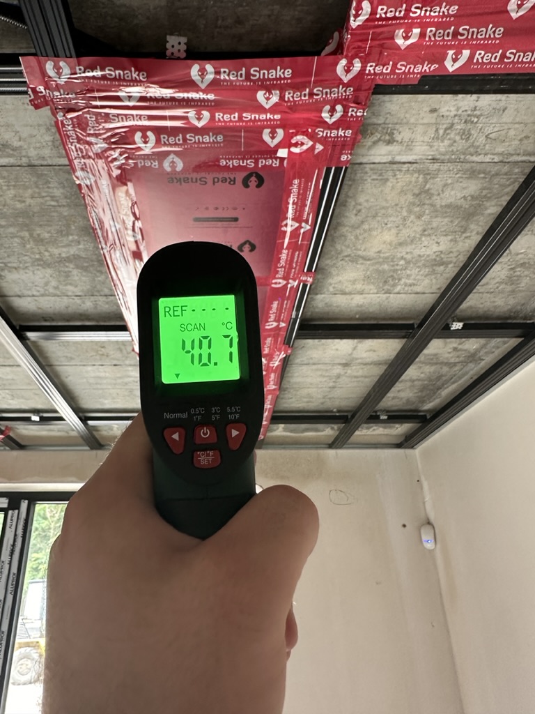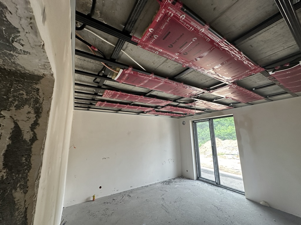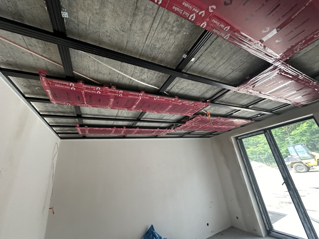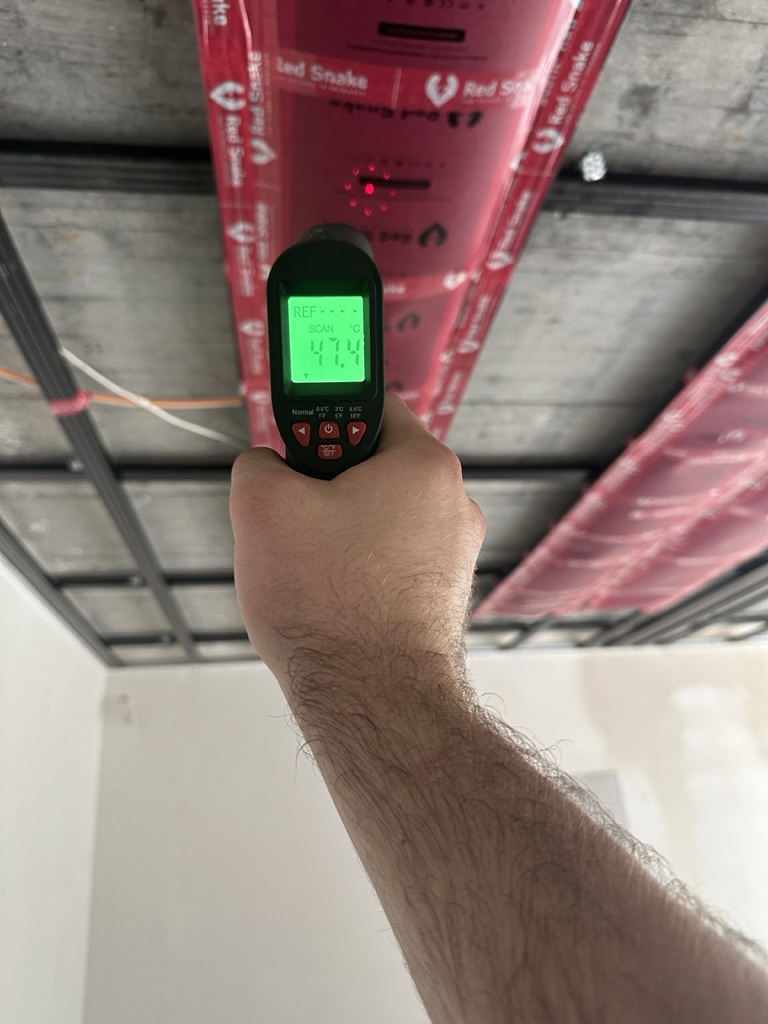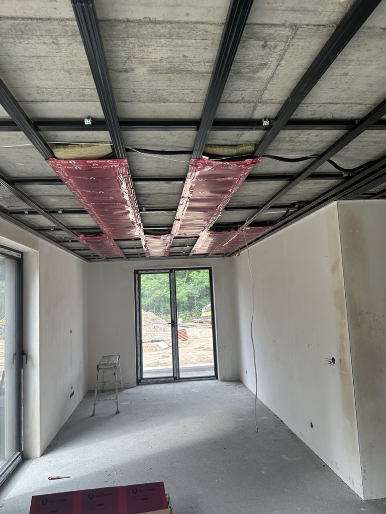 Ogrzewanie sufitowe w Świebodzinie dom ok 300m2 w systemie hybrydowym. Zastosowane folie grzewcze Red Snake 150Wm2 podłoga, 400Wm2 sufit.