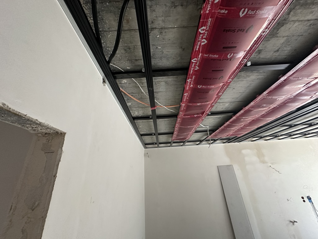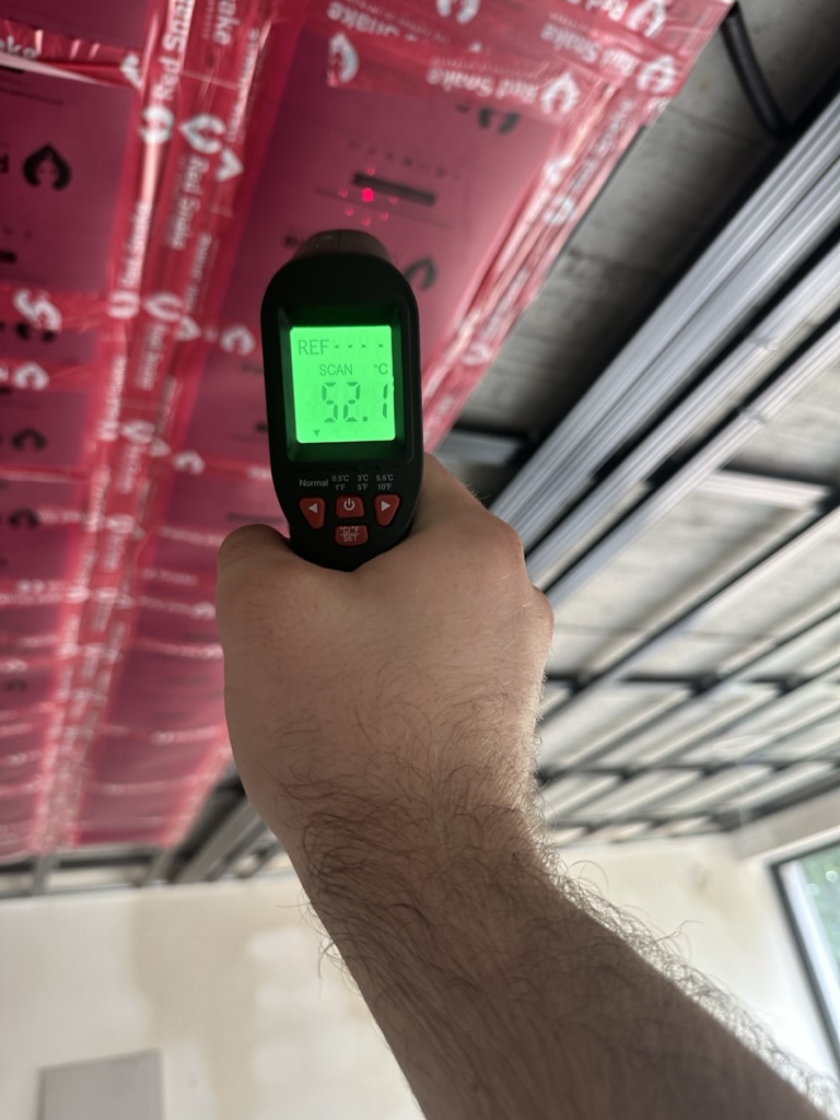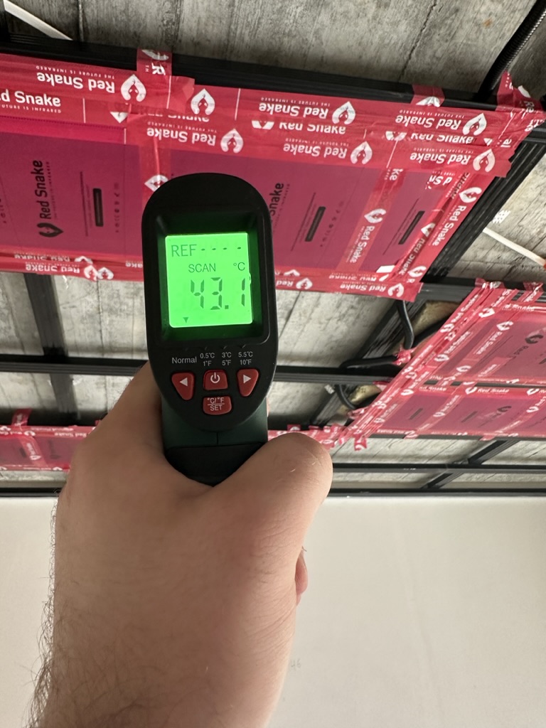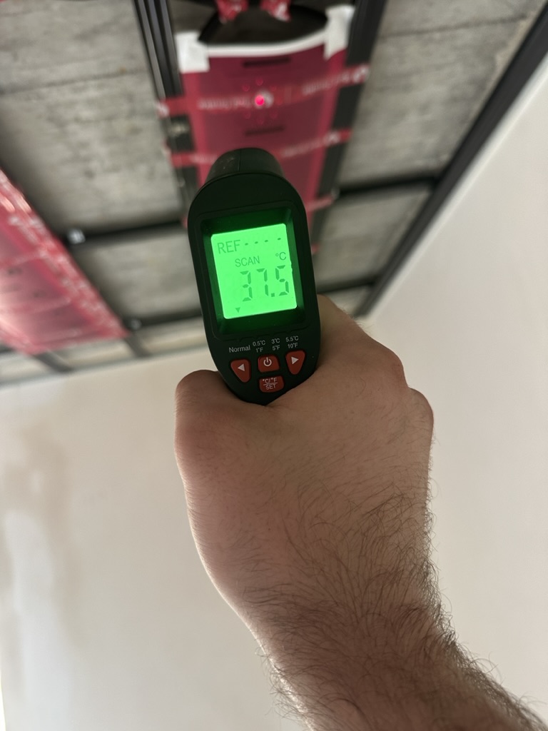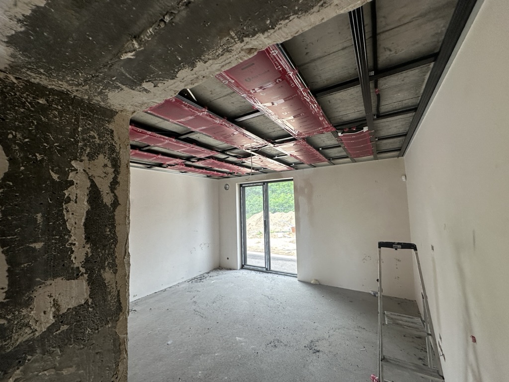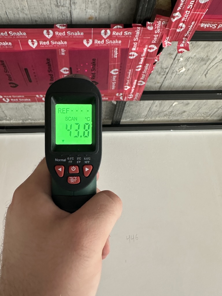 Ogrzewanie sufitowe w Świebodzinie dom ok 300m2 w systemie hybrydowym. Zastosowane folie grzewcze Red Snake 150Wm2 podłoga, 400Wm2 sufit.