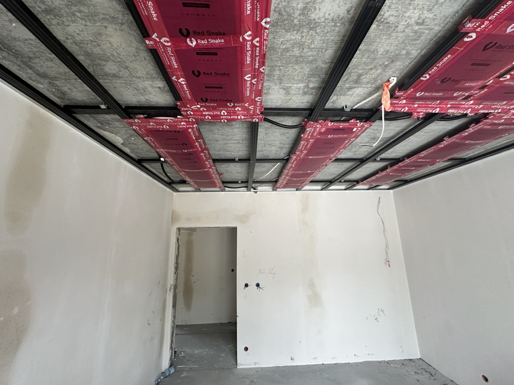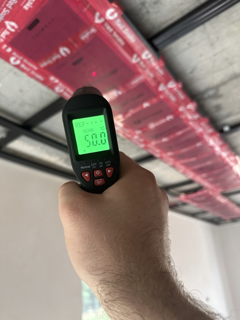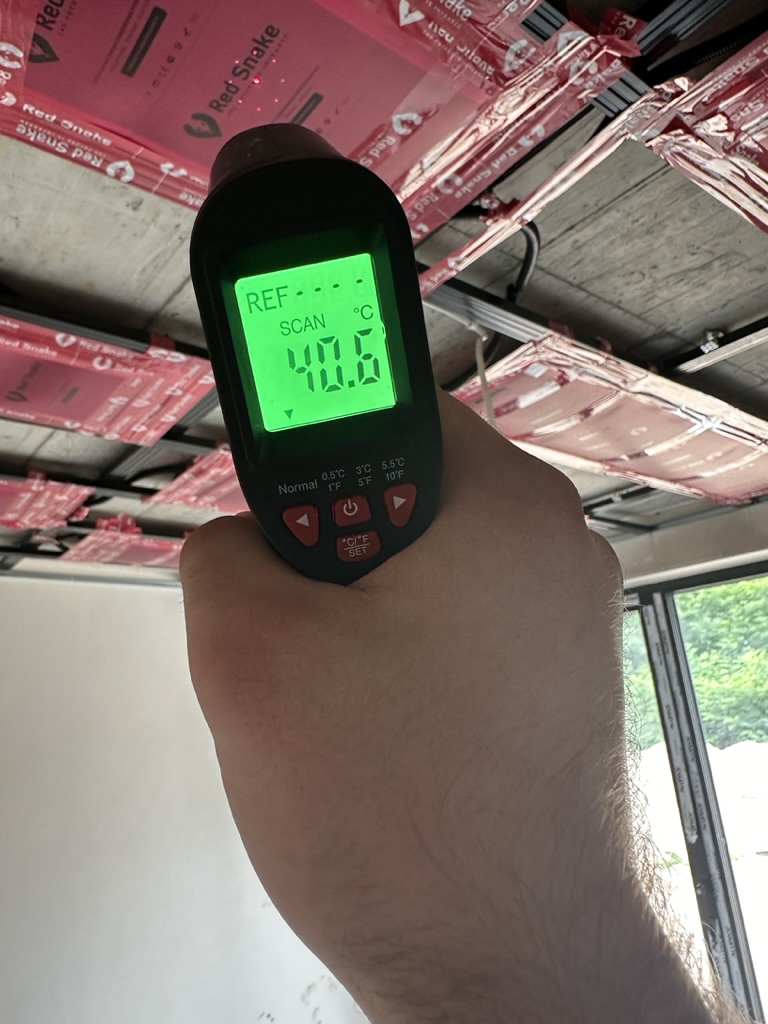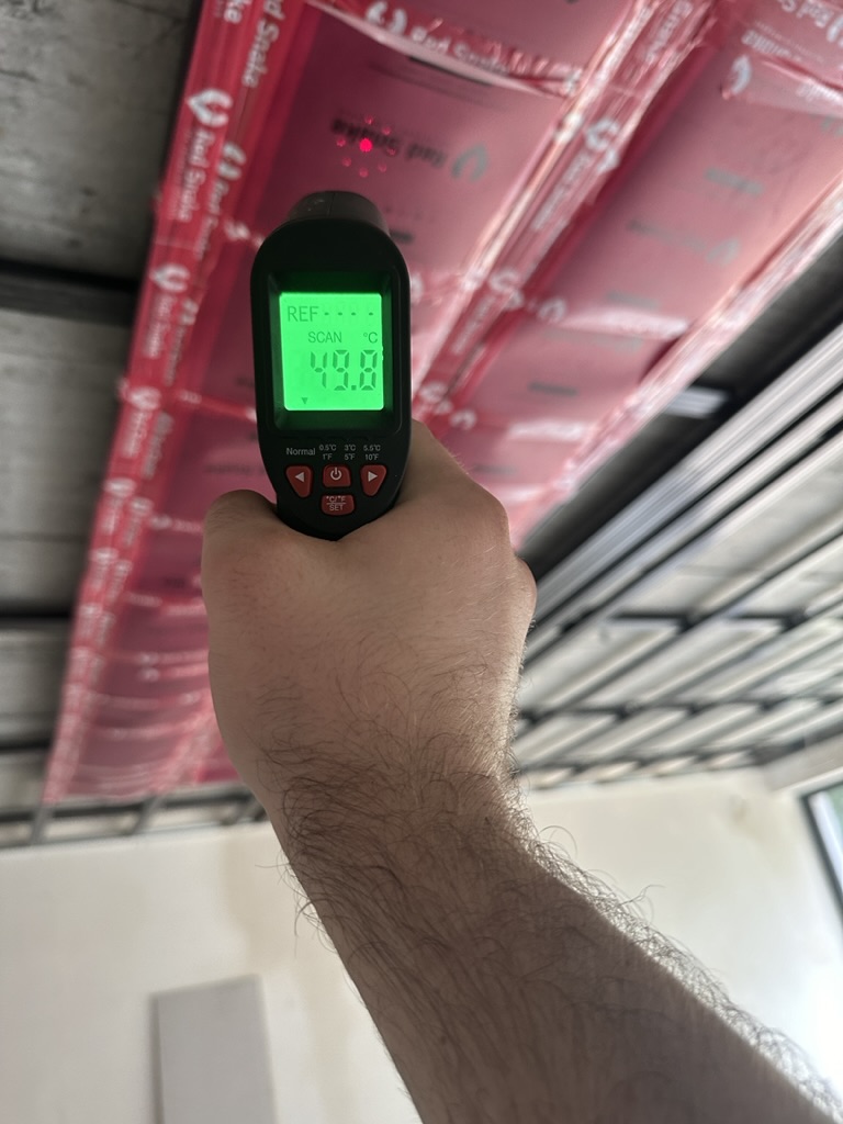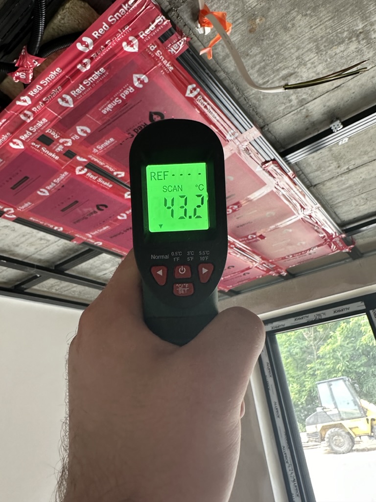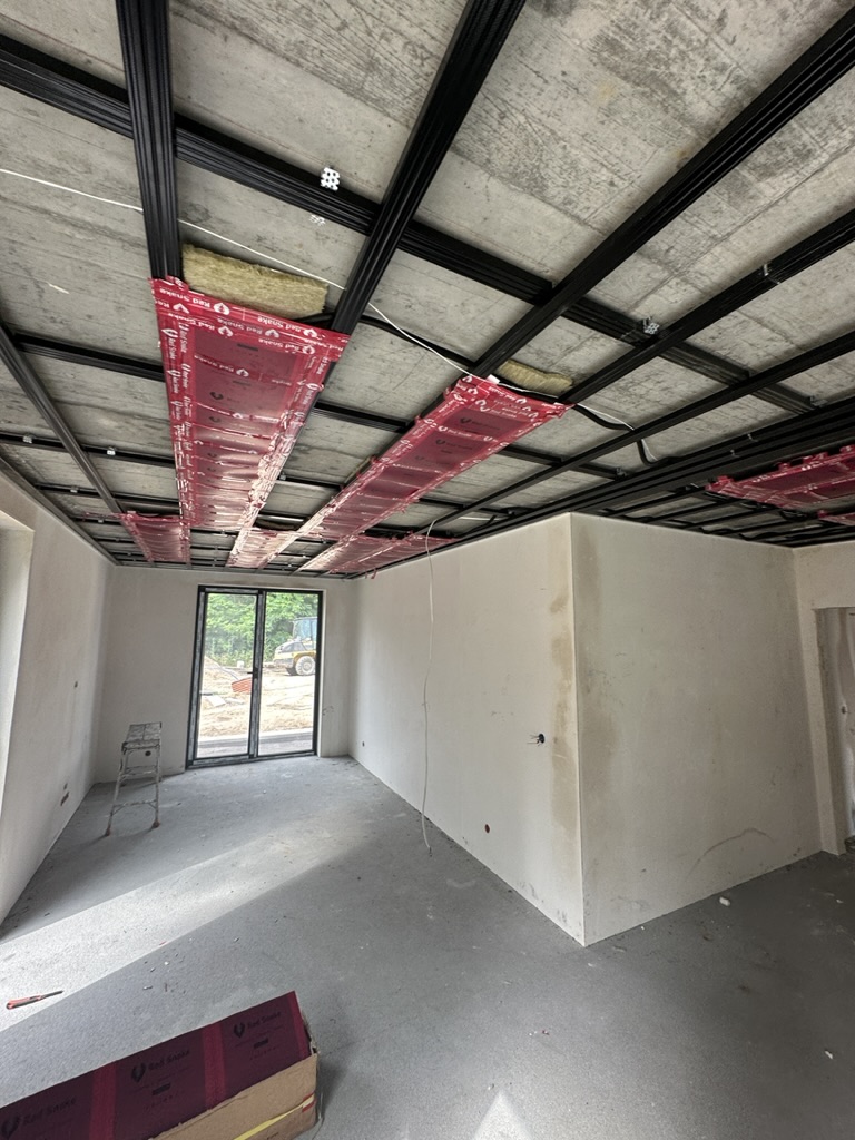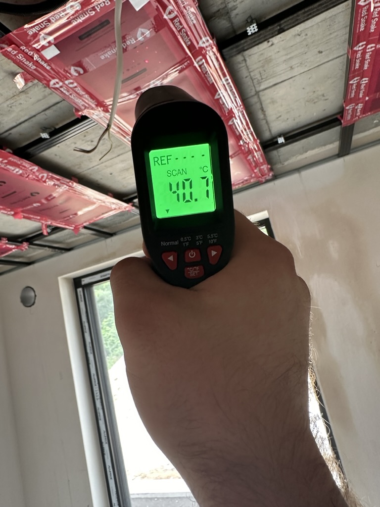 Ogrzewanie sufitowe w Świebodzinie dom ok 300m2 w systemie hybrydowym. Zastosowane folie grzewcze Red Snake 150Wm2 podłoga, 400Wm2 sufit.